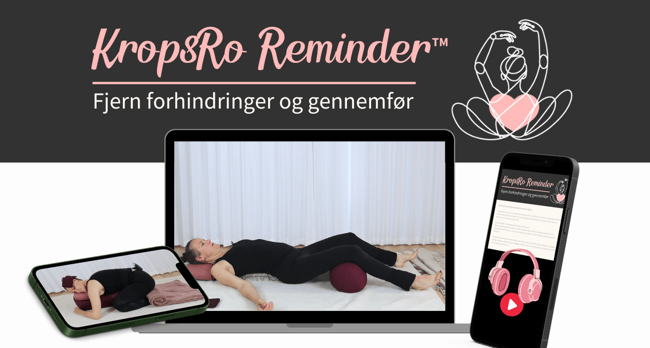 Få med garanti gennemført KropsRo Metoden - brug KropsRo Reminder, kun 99 kr: KropsRo Reminder™ er 10 mails og unikke lydfiler, der har hver sit særlige emne, som direkte motiverer og inspirerer dig til at gennemføre KropsRo Metoden™. Der hvor mange går i stå, vil du blive holdt i hånden mentalt indtil du når dit mål. Alt materialet vil også være tilgængeligt på kursus platform. Tryk JA TAK for at tilføje ” KropsRo Reminder™” for kun 99 kr.